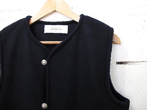 コンチョがよいアクセント 〜 ウールを天竺編みで 高温高圧で縮ませメルトンのように仕上げた、軽くて伸縮性があり、暖かい素材。 CURLY / FROSTED VEST ( NA...